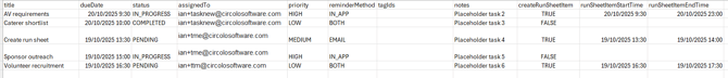In this article, you'll learn how to prepare your file to import tasks and task related run sheet items using a CSV file.